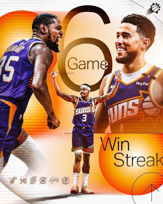 太阳豪取6连胜,现在以7胜1负升至西部第一。