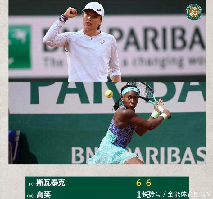 第三局,高芙的发球轮,再次被破发。0-3逾期。第四局,斯瓦泰克收效保发,比分上风扩大到4-0。